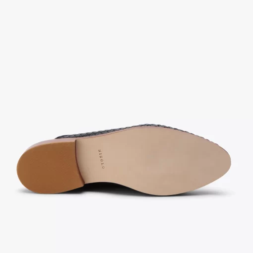 - Soft yet structured woven leather